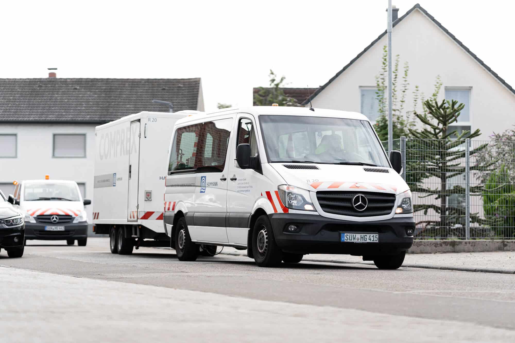 Diese hochbeschleunigten Pakete erzeugen enorme Turbulenzen mit starken Scher- und Schleppkräften, wodurch sie es schaffen, Ablagerungen zu mobilisieren und zuverlässig auszutragen. In vielen Kommunen befinden sich noch alte Rohrleitungen aus bruchempfindlichen Werkstoffen, zum Beispiel Graugussleitungen. Selbst diese Rohrleitungen können wir zuverlässig und schonend reinigen, denn wir bleiben immer unter dem Netzruhedruck. Die Luftblöcke wirken dabei wie Airbags, wodurch Druckstöße verhindert werden.