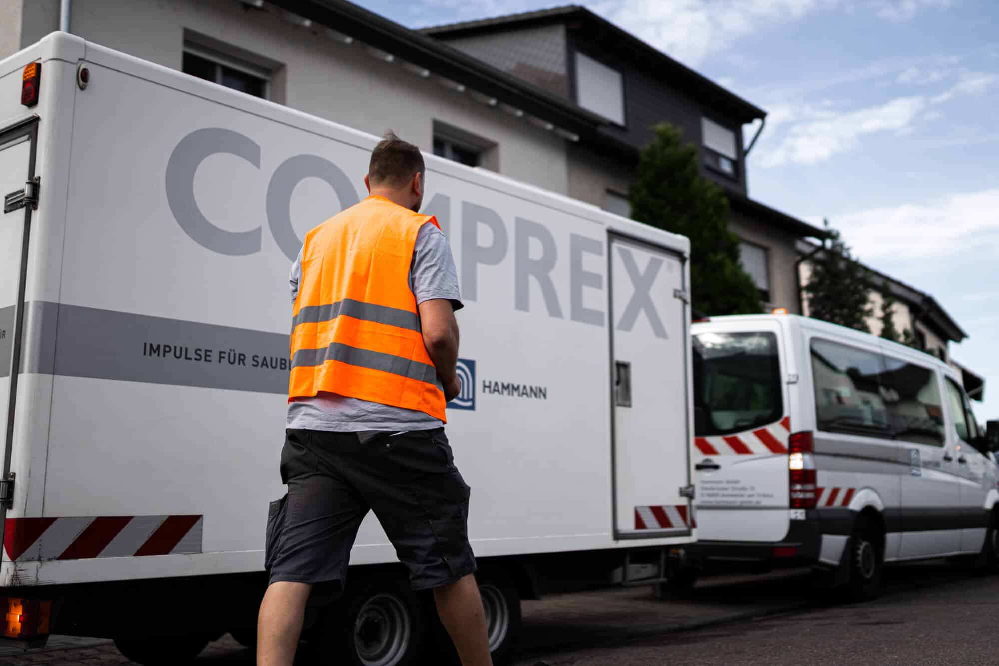 Wir nehmen uns die zu reinigenden Rohrleitungsabschnitte einzeln vor und arbeiten diese systematisch ab. Unsere comprex® Einheiten liefern dreifach filtrierte Druckluft, während unsere intelligente Softwaresteuerung dafür sorgt, dass der Luftdruck stets unterhalb des Betriebsdrucks der Rohrleitung bleibt. Dagegen arbeitet unser extraQt® Verfahren bei der Netzpflege und Zustandserfassung ohne Luft mit einer leistungsstarken Saugpumpe.