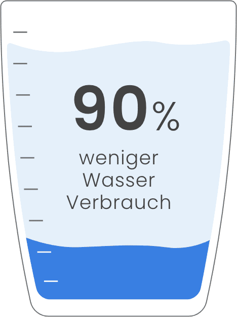 Die kraftvollen Reinigungsimpulse aus Luft und Wasser sind nicht nur wirksam, sondern verbrauchen bis zu 90 % weniger Wasser als eine Wasserspülung.